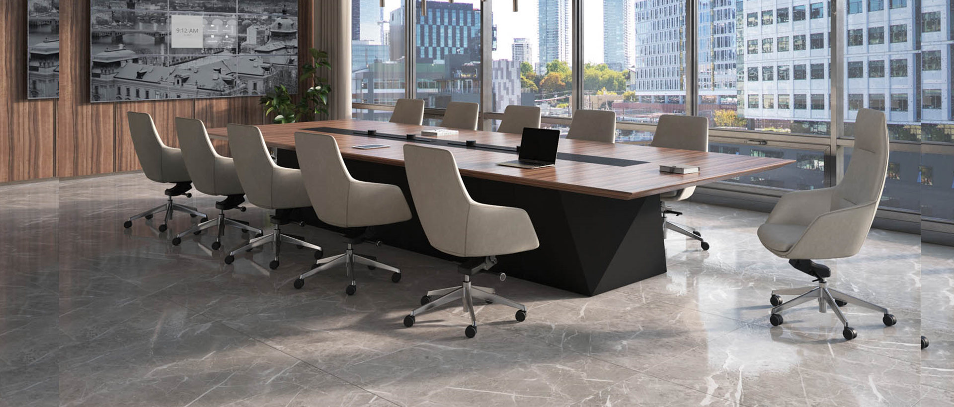 大百匯集團位于深圳羅湖,是一家多元化企業集團。因為公司人員比較多,所以需要一個大型會議室。為了迎合客戶的需求和企業的整體氣質和文化,我們向客戶推薦了簡約穩重版的會...